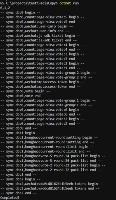 修改 redis 配置之后(根据自己要同步数据量的大小设置超时时间),在项目根目录下运行 dotnet run 即可,