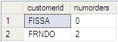 from dbo.Customers as C left join dbo.Orders as O on C.customerid = O.customerid
