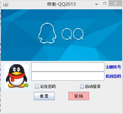 这是我模仿QQ2015版界面,实现的基本功能有登陆验证,重置等,当然直接复制代码运行是不一样的,还要注意自己插入自己的图片。