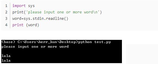 Python中常用到的两种标准化输入方式:分别sys.stdin和input,两者使用方式大致相同,但是总的来说sys.stdin使用方式更加多样化一些,下面就例子说明两者之间的使用差别。