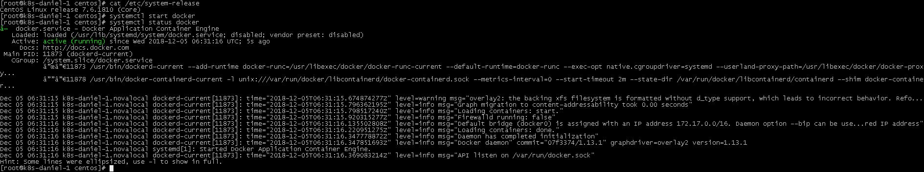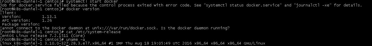 # cat /etc/system-release CentOS Linux release 7.2.1511 (Core) # uname -a Linux k8s-daniel-3 3.10.0-327.28.3.el7.x86_64 #1 SMP Thu Aug 18 19:05:49 UTC 2016 x86_64 x86_64 x86_64 GNU/Linux