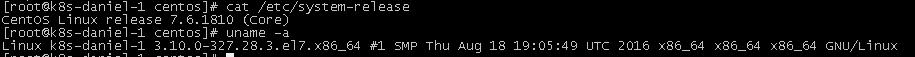 # cat /etc/system-release CentOS Linux release 7.6.1810 (Core) # uname -a Linux k8s-daniel-3 3.10.0-327.28.3.el7.x86_64 #1 SMP Thu Aug 18 19:05:49 UTC 2016 x86_64 x86_64 x86_64 GNU/Linux