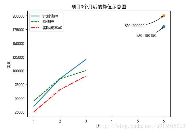 plt.plot(x[:3],y3,'r-.',label='实际成本AC',linewidth = 2)