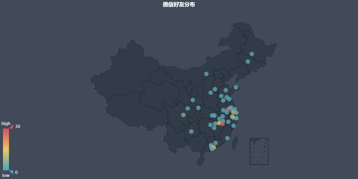 geo = Geo("微信好友分布", "", title_color="#fff", title_pos="center",