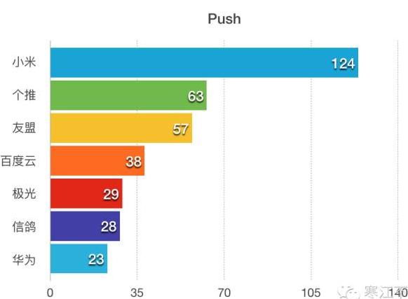 首先看一张国内Top500 Android应用中它们用到的第三方推送以及所占数量: