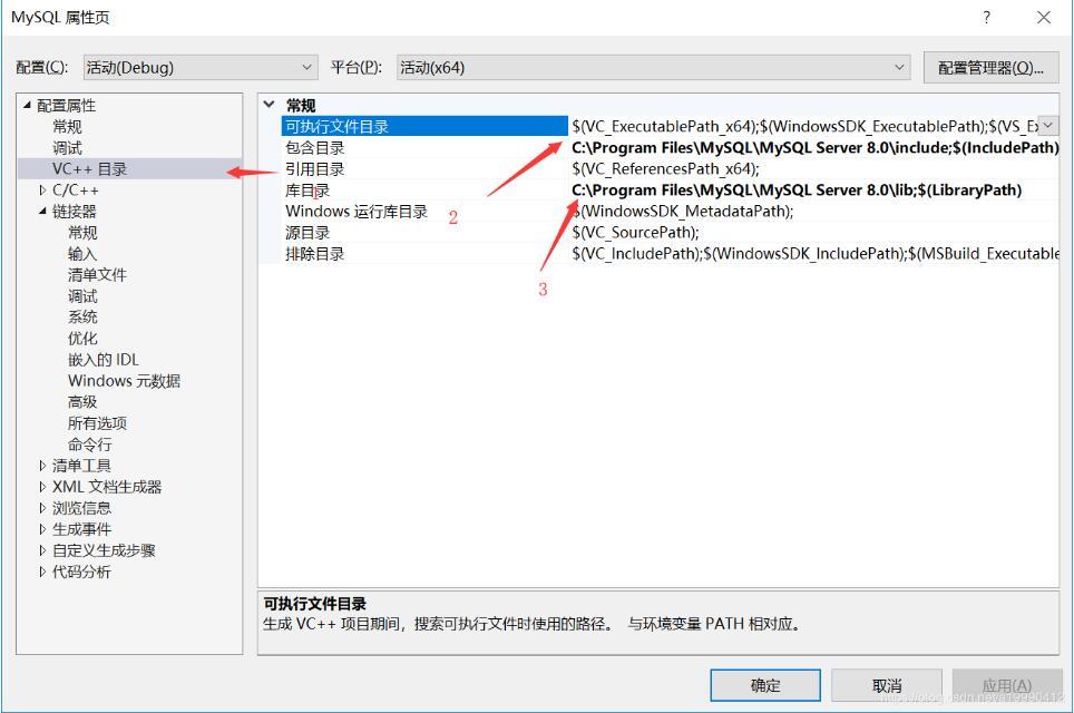 2的部分写的地址: C:\Program Files\MySQL\MySQL Server 8.0\include