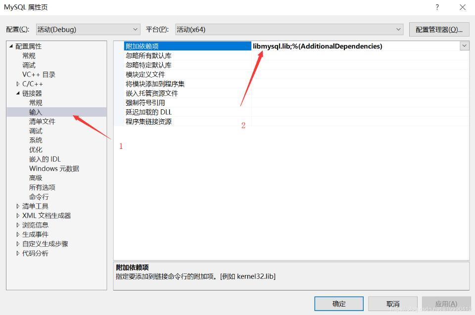 2中写的内容为: libmysql.lib