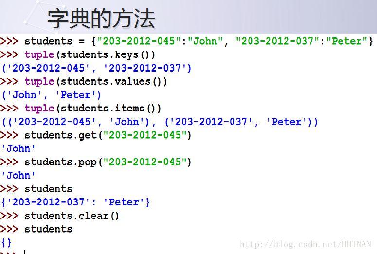 print ('方案三 使用set作为dict的值 值不允许重复')