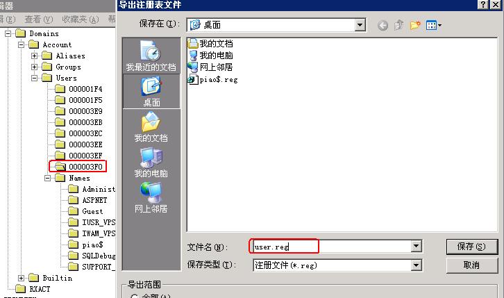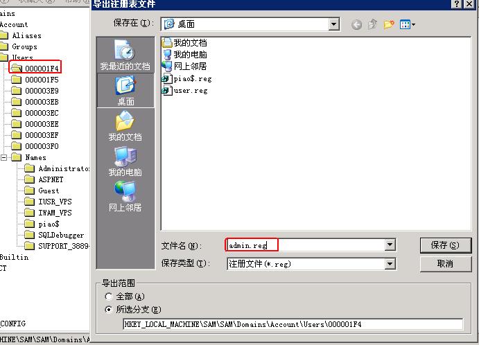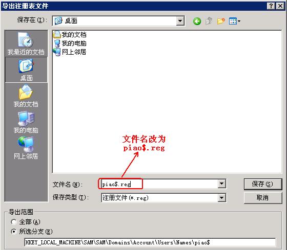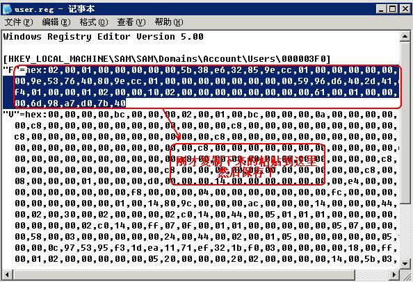 将“piao$”的键值导出为piao$.reg,同时将“000003f0”和“000001F4”项的F键值分别导出为user.reg,admin.reg。用“记事本”打开admin.reg,将其中“F”值后面的内容复制下来,替换user.reg中的“F”值内容,完成后保存。接下来进入“命令提示符”,输入“net user piao$ /del”将我们建立的隐藏账户删除。最后,将piao$.reg和user.reg导入注册表,至此,隐藏账户制作完成。