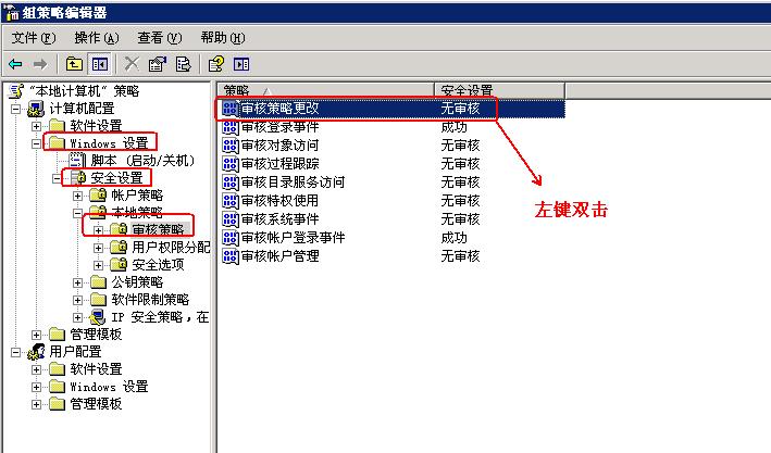 如果黑客制作了一个修改注册表型隐藏账户,在此基础上删除了管理员对注册表的操作权限。那么管理员是无法通过注册表删除隐藏账户的,甚至无法知道黑客建立的隐藏账户名称。不过世事没有绝对,我们可以借助“组策略”的帮助,让黑客无法通过隐藏账户登陆。点击“开始”→“运行”,输入“gpedit.msc”运行“组策略”,依次展开“计算机配置”→“Windows 设置”→“安全设置”→“本地策略”→“审核策略”,双击右边的“审核策略更改”,在弹出的设置窗口中勾选“成功”,然后点“确定”。对“审核登陆事件”和“审核过程追踪”进行相同的设置。