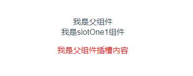 <template> <div> 我是父组件 <slotOne1> <p style="color:red">我是父组件插槽内容</p> </slotOne1> </div> </template>