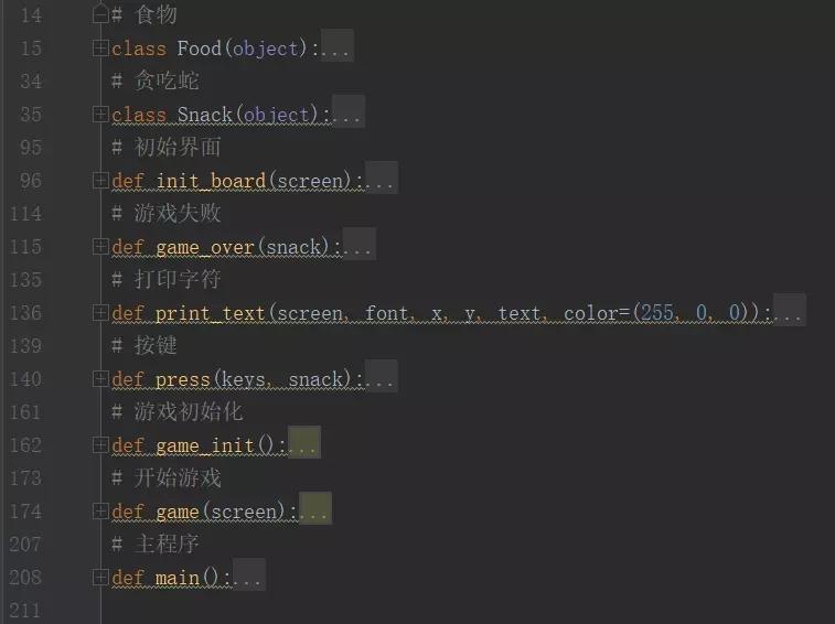 下面是贪吃蛇的代码部分,大家可以结合注释阅读:
