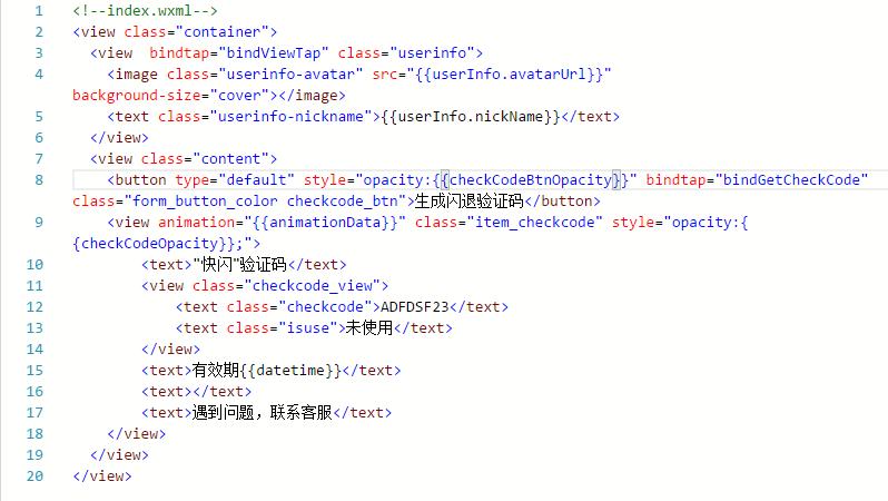 从上面的代码我们可以看到,我分别用了checkCodeBtnOpacity,checkCodeOpacity控制了两个块的透明度。用于隐藏。