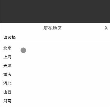 例如,依次选择了北京-朝阳区-三环以内之后,又回到了省级选择了浙江省,此时二级三级区域都还是原先所选的朝阳区-三环以内,左右滑动区域内容也显示的是错的。