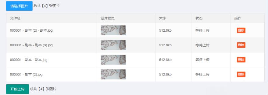 var tr = $(['<tr id="upload-' + index + '">', '<td>' + file.name + '</td>', '<td><img src="' + result + '" alt="' + file.name + '" style="width: 100px;height: 40px;"></td>', '<td>' + (file.size / 1014).toFixed(1) + 'kb</td>', '<td>等待上传</td>', '<td>', '<button class="layui-btn layui-btn-xs demo-reload layui-hide">重传</button>', '<button class="layui-btn layui-btn-xs layui-btn-danger demo-delete">删除</button>', '</td>', '</tr>'].join(''));