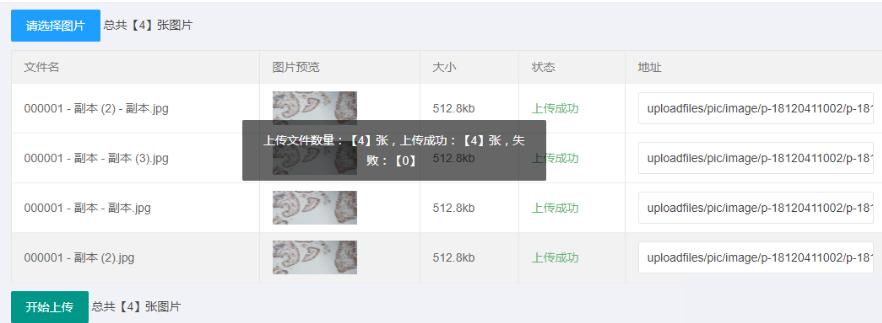 layer.msg("上传文件数量:【" + obj.total + "】张,上传成功:【" + obj.successful + "】张,失败:【" + obj.aborted + "】", {