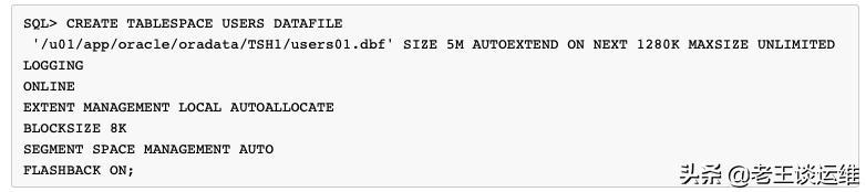 - EXTENT MANAGEMENT LOCAL AUTOALLOCATE:区大小由系统自动分配。