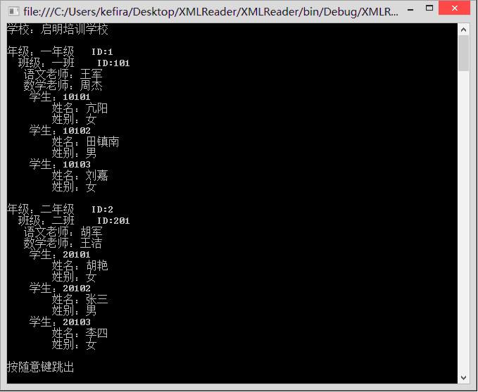 Console.WriteLine(" 班级:" + classNode.Attributes["name"].Value + " ID:" + classNode.Attributes["id"].Value);