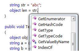Visual Studio 2008对扩展方法有智能感知的支持,如下图