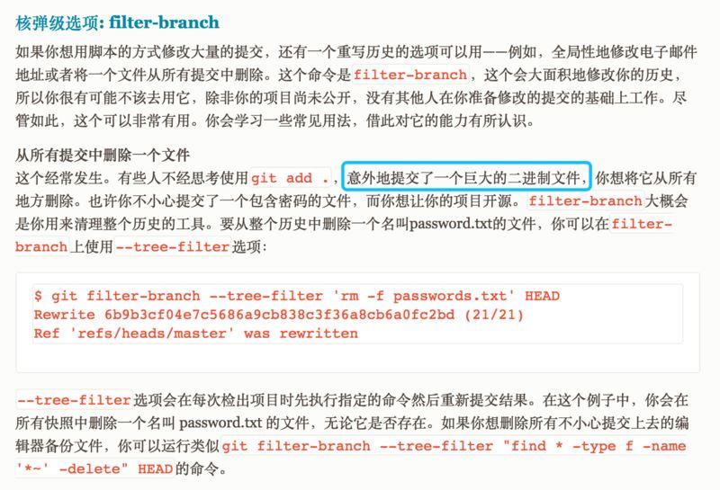 从commit的提交历史中删除指定文件的命令为git filter-branch --tree-filter 'rm -f 文件名' HEAD