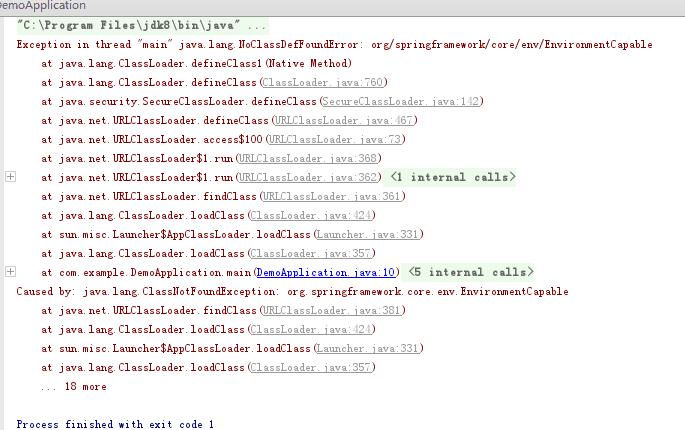 运行application,发现缺少依赖的spring-core包: