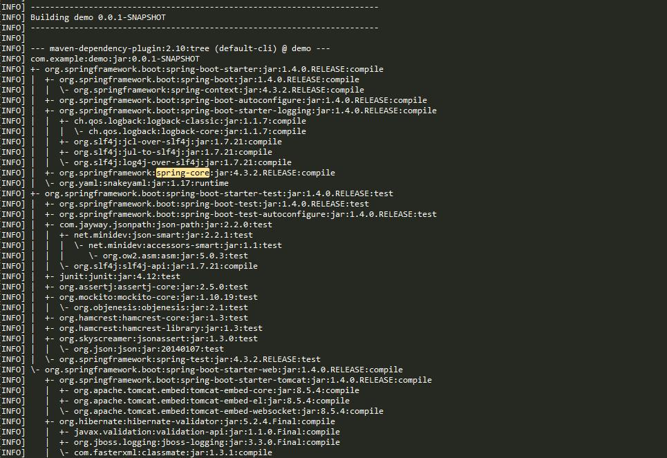 但是spring boot的包都是通过parent的starter引入的,通过mvn denpendency:tree查看项目的jar依赖信息: