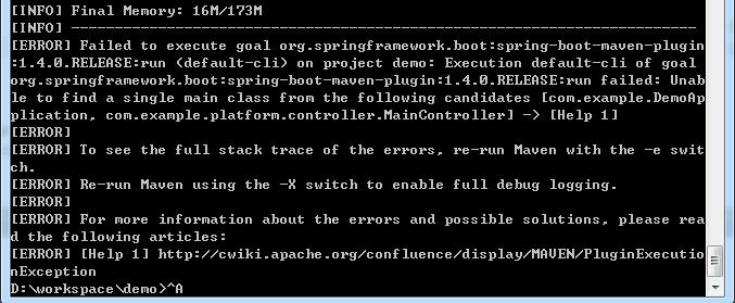 在CMD执行 mvn spring:boot run,却奇怪发现报错信息: