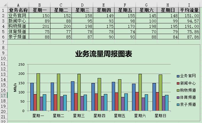 title = [u'业务名称',u'星期一',u'星期二',u'星期三',u'星期四',u'星期五',u'星期六',u'星期日',u'平均流量']