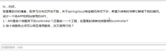 那么问题来了,涉及到多个服务之前的交互,其实跟上面那位同学问我的是一样的问题,是否需要统一工程,组装其他服务?是否可以相互调用?