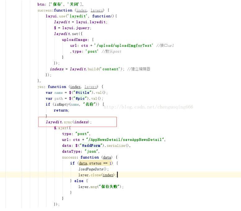 如图:需要再提交之前同步数据: layedit.sync(indexs);