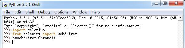 在IDLE(Python 3.6.2)中输入import selenium按回车,再入from selenium import webdriver按回车,最后输入b=webdriver.Chrome()按回车键就能成功调用chrome浏览器。如图: