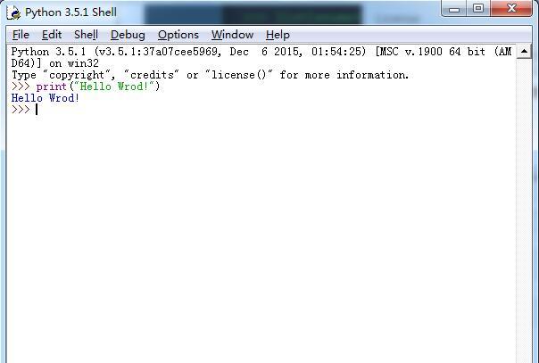 如上图在里面输入print("Hello Wrod!")按回车,出现Hello Wrod!,说明已经把IDLE装好了,下面打开dos命令窗口输入Python按回车。如下图: