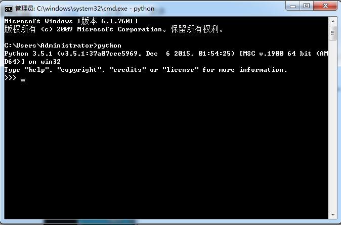 出现python版本号等信息说明python已经安装成功。如果出现错误信息,则需要配置环境变量: