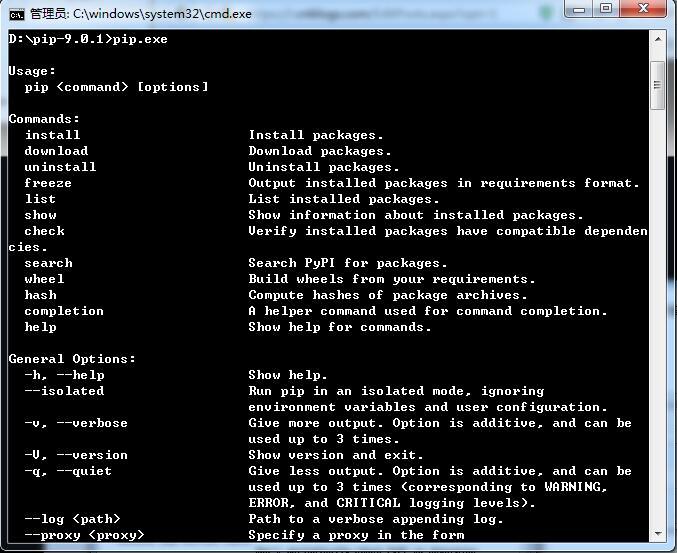 下载完成后解压,打开dos命令窗口进入刚才解压后的文件夹里面(如:D:\pip-9.0.1,这个是解压后的pip文件夹)输入如下信息: