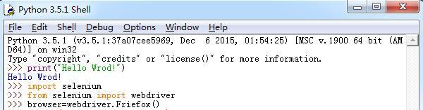 在IDLE(Python 3.6.2)中输入import selenium按回车,再入from selenium import webdriver按回车,最后输入browser=webdriver.Firefox()按回车键就能成功调用firefox浏览器。如图: