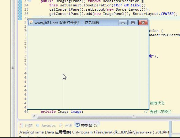 frame.setTitle("www.jb51.net 双击打开图片,然后拖拽");
