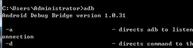 打开CMD控制台,输入adb,出现如下界面,即为配置成功。如图: