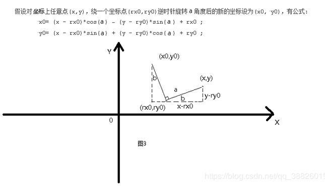(x,y)为要转的点,(pointx,pointy)为中心点,如果顺时针角度为angle