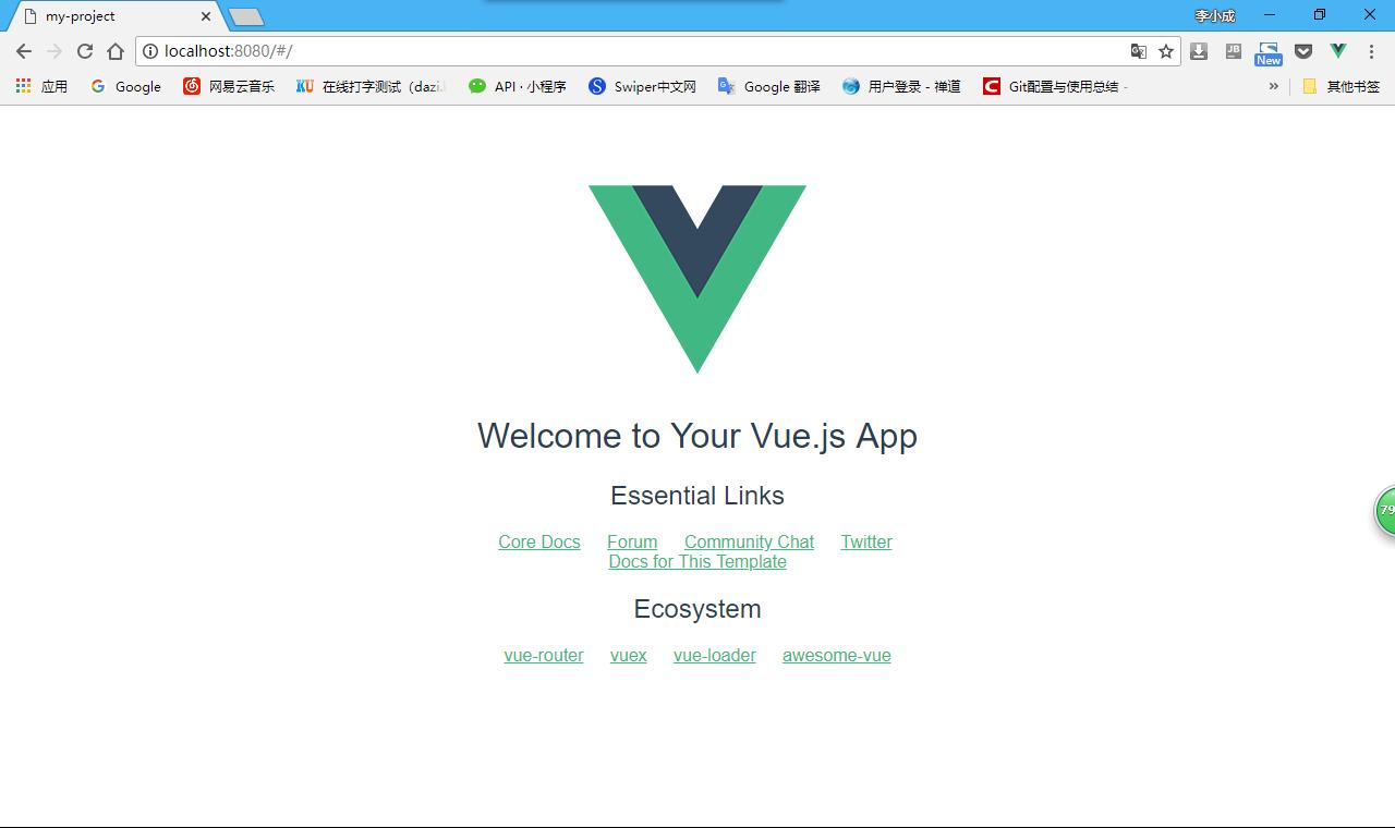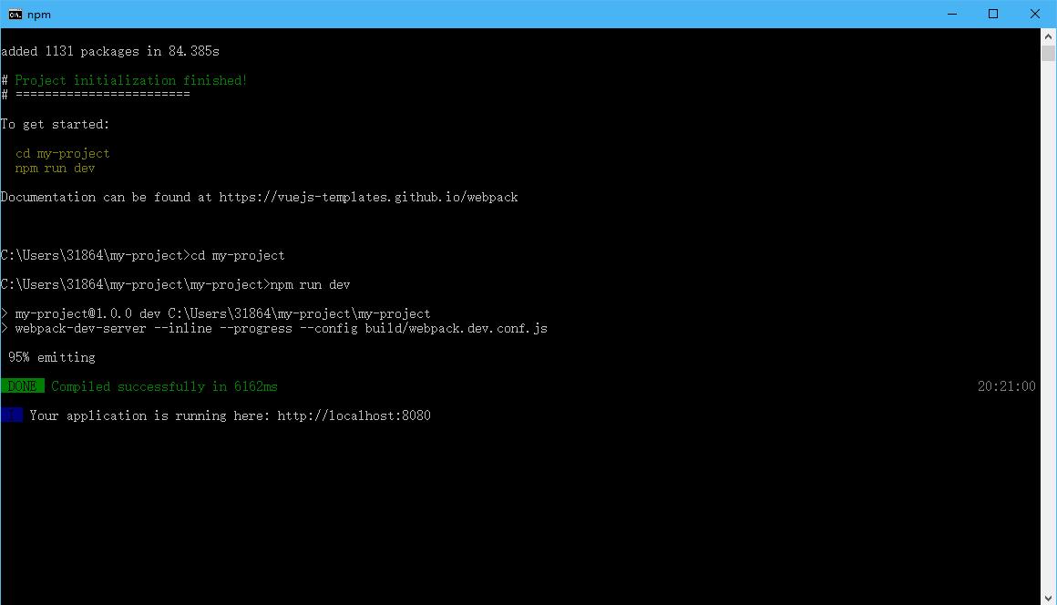14、cd 你的目录名然后输入npm run dev启动应用,启动成功它会自动打开一个vue页面