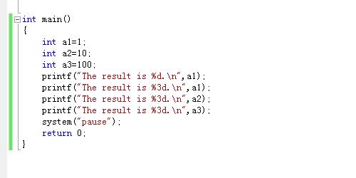 其中的%d代表后面的变量,d表示整数,d前面的整数代表该整数输出时会占用多大的空间,一般用于对齐输出。