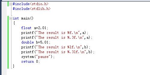 小数有两种表示方法,一种是float单精度,一种是double双精度,使用起来没有太大的差别,只是double的精度是float精度的两倍,在printf输出时f代表单精度,而lf代表双精度。另外,“.3f”和".3lf"中的点加整数代表需要保留几位小数。