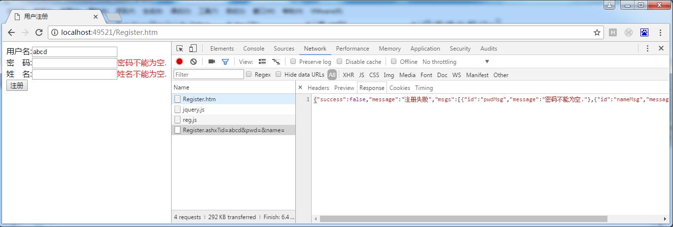 //最的形如:{"success":false,"message":"注册失败","msgs":[{"id":"pwdMsg","message":"密码不能为空."},{"id":"nameMsg","message":"姓名不能为空."}]}