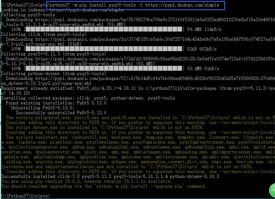 命令:python37 -m pip install PyQt5-tools -i https://pypi.douban.com/simple
