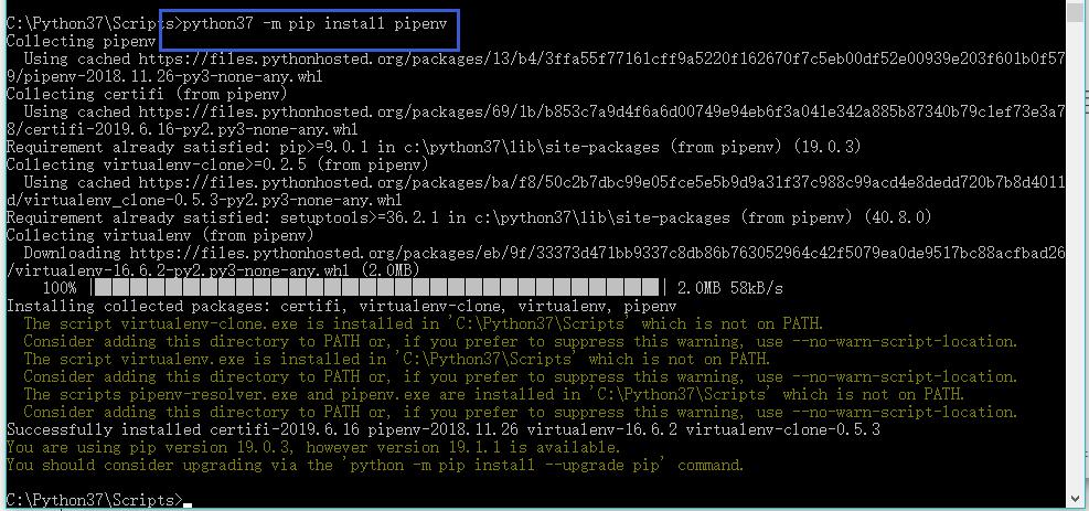第八步:安装pipenv虚拟环境 python37 -m pip install pipenv