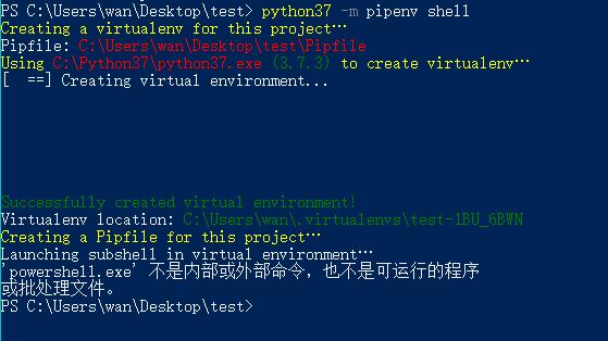第十步:虚拟环境激活 python37 -m pipenv shell