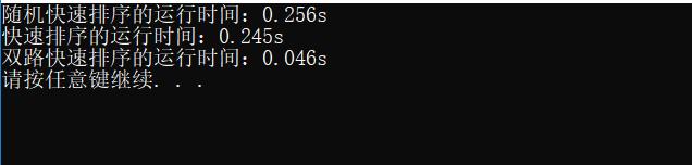 SortTestHelper::sortTime("双路快速排序", QuickSort2, arr3, n);