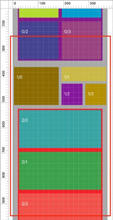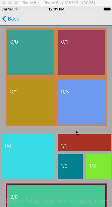 根据DataSource的Delegate,拿到所有的View应该被显示的位置。这一步,核心是拿到的位置是确定的。根据Demo,我们观察从 0/1 - 2/3 之间这些View,这个时候LazyScrollView拿到的Rect如下: