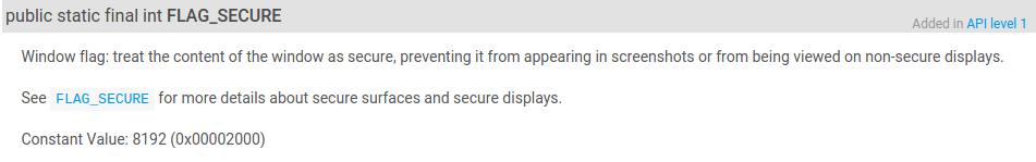 我们来看看Android开发者网站是怎么解释FLAG_SECURE的: