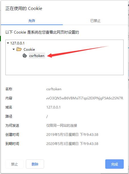 - 这里的筷子就是解决问题的JS代码,而饭就是这个 {% csrf_token %} ,更确切说因该是浏览器中的叫 csrftoken 的 cookie;