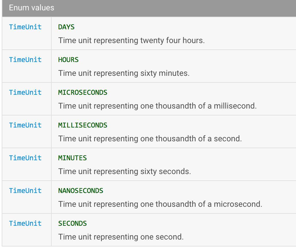 Unit:参数keepAliveTime的时间单位,就是 TimeUnit类当中的几个属性。